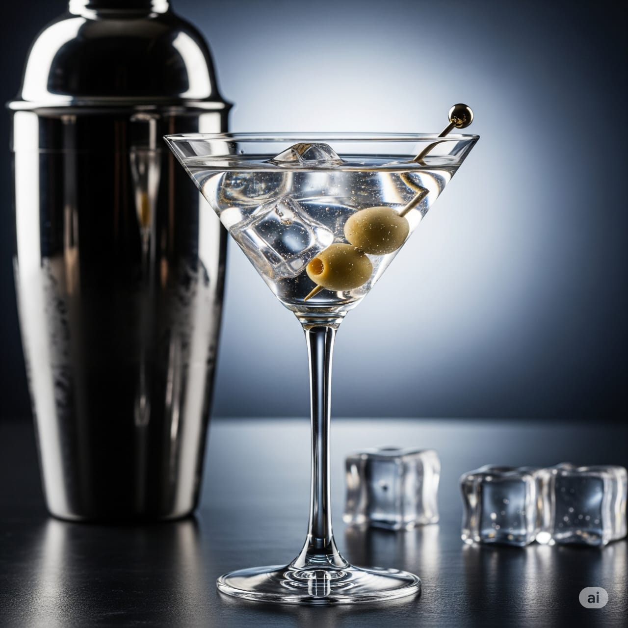 Vodka or gin shaken or stirred with dry vermouth, make it dirty by adding olive juice.