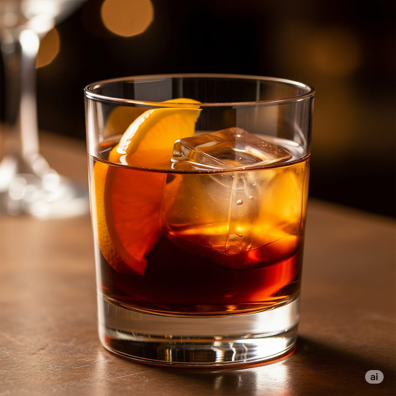 Whiskey Bourbon, red vermouth, dash or Angostura bitters.